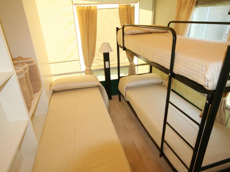 Do dyspozycji gości jest sypialnia z łóżkiem małżeńskim oraz pokój z łóżkiem pojedynczym i łóżkiem piętrowym, salon z aneksem kuchennym, stołem i krzesłami, a także w pełni wyposażona łazienka z prysznicem, toaletą i umywalką. Na zewnątrz znajduje się zadaszona drewniana weranda.